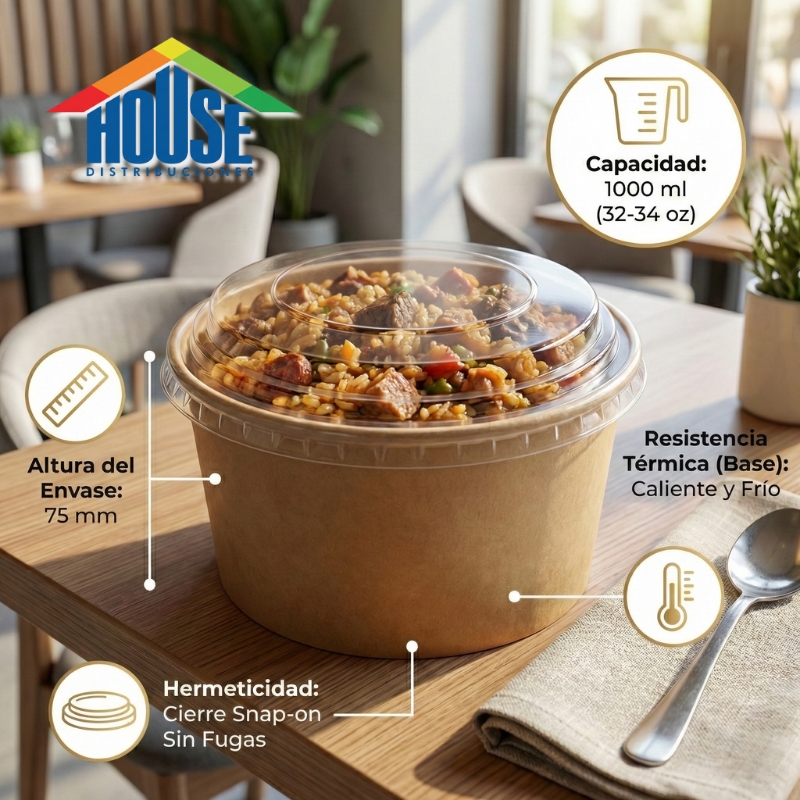 EcoHouse Bowl 1000-cc Carton con Tapa Plast. Cod.2000